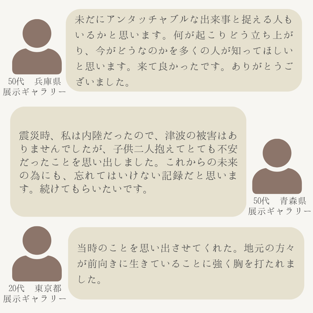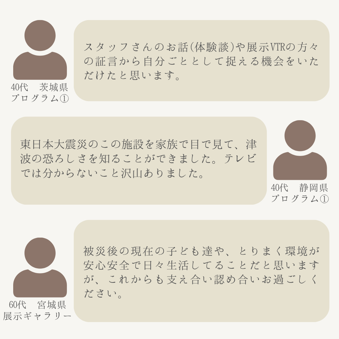南三陸311メモリアルでは、毎月ご来場いただいたお客様を対象に、アンケートを実施しております。