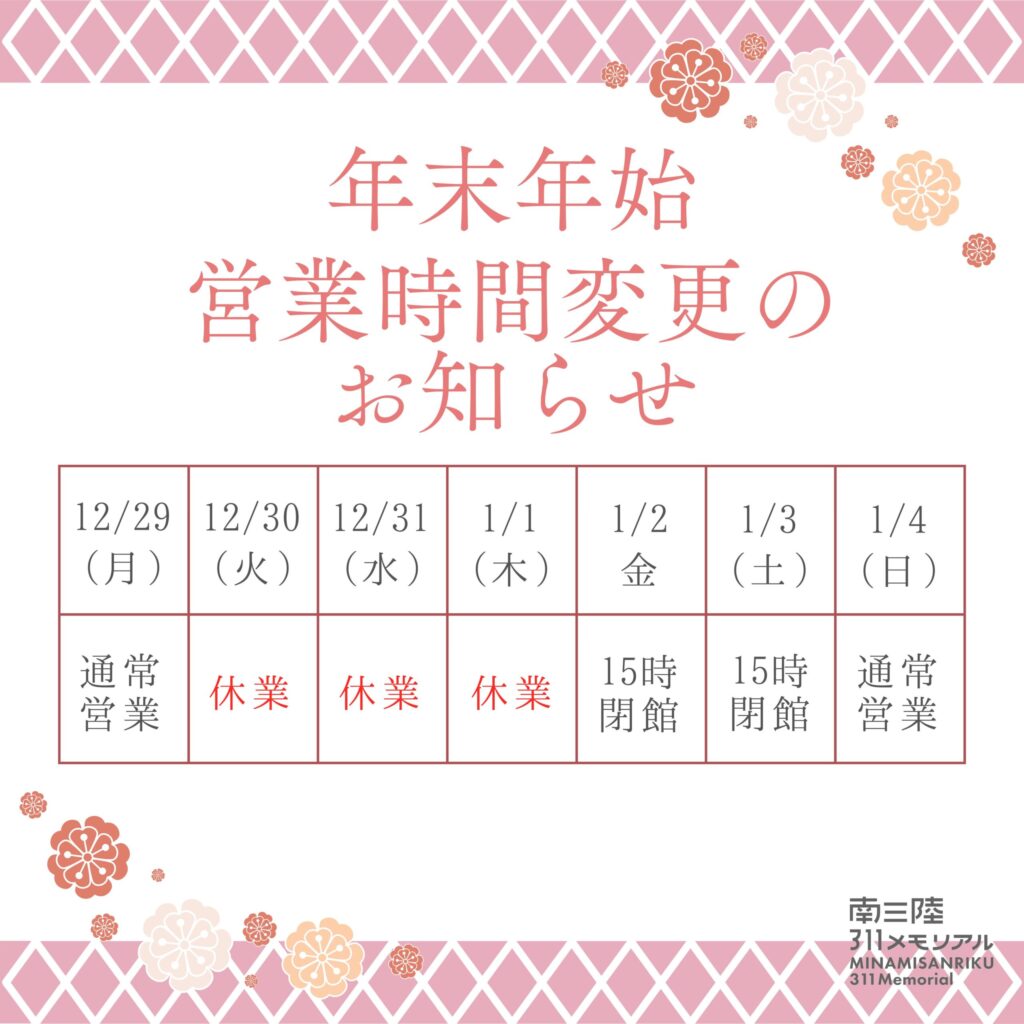 なお、1月2日(金)および3日(土)は開館時間を短縮し、15時閉館とさせていただきます。