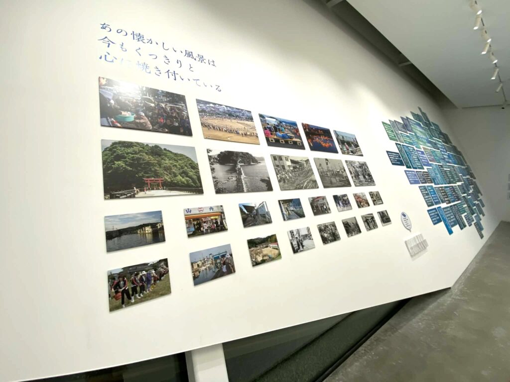 震災前の南三陸の町や人々の姿を写した写真パネルや、昭和期の白黒写真、