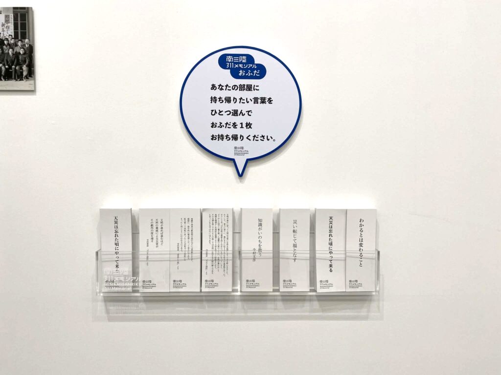 そして、来館者が言葉を持ち帰ることのできる「おふだ」を紹介する展示へと整えています。