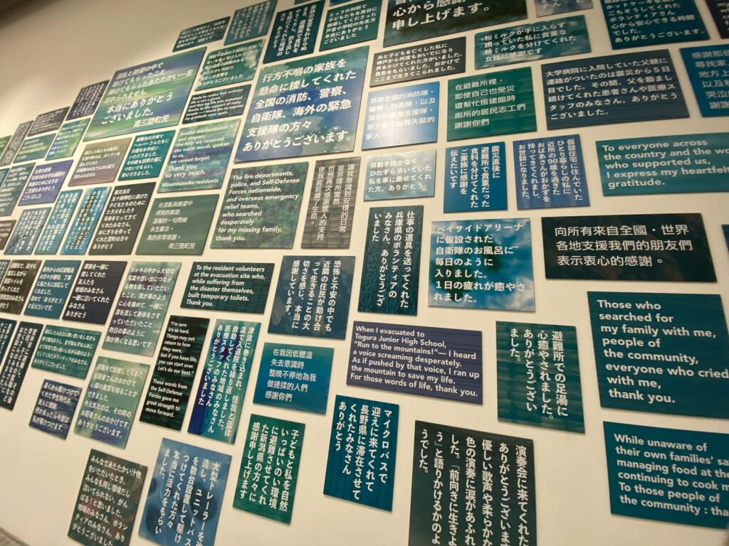 全国から寄せられた「ありがとう」のメッセージパネル、