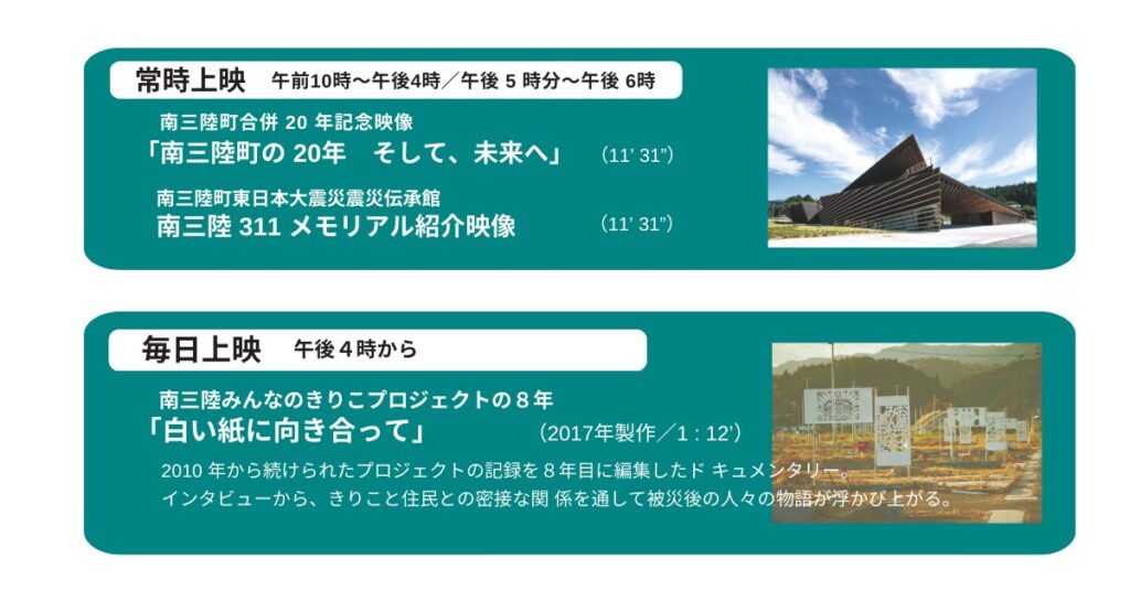 震災前から現在、そして未来へと続く南三陸の物語をご覧いただけます。