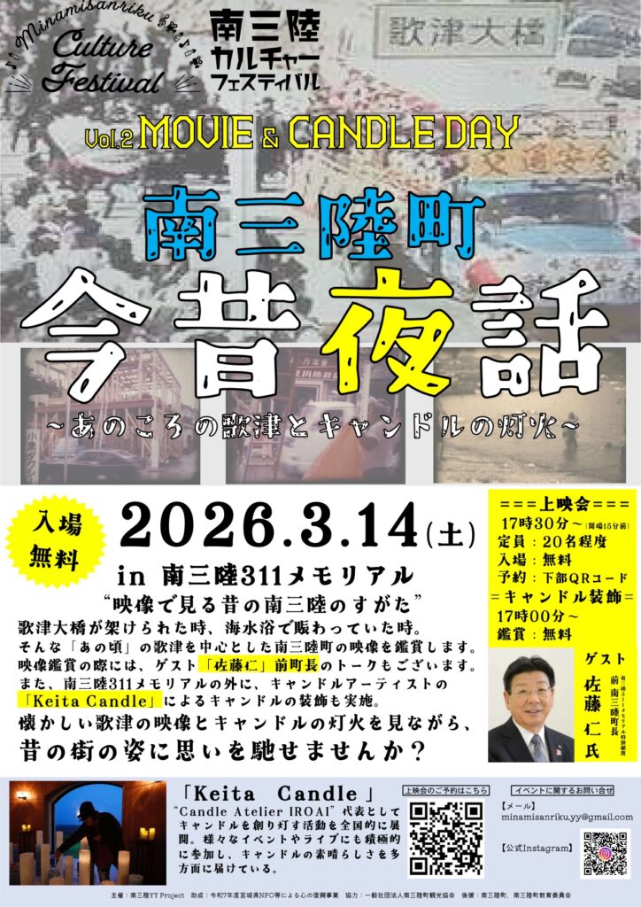 南三陸カルチャーフェスティバル Vol.2「南三陸町 今昔夜話~あのころの歌津とキャンドルの灯火~」 を開催します。
