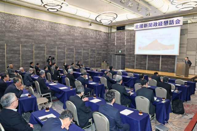 北國新聞政経懇話会は、地域の企業経営者や各界のリーダーが参加する講演会で、社会・経済・地域づくりなどをテーマに各分野の講師を招いて開催されています。