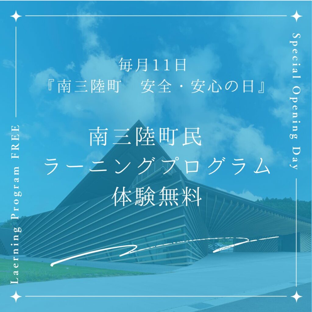 毎月11日は「南三陸町安全安心の日」。 それに合わせ、毎月11日は町民のみなさまであれば無料で